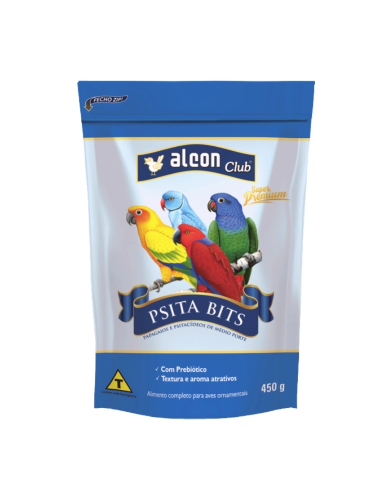 Alcon Club Psita Bits Super Premium é um alimento extrusado completo especialmente desenvolvido para Papagaios e Psitacídeos de médio porte como Jandaias, Maritacas, Ring Necks e Eclectus. O formato foi elaborado especialmente para estimular a manipulação pelas aves, reproduzindo a situação encontrada na natureza. Sua formulação especial contém vitaminas, minerais e Prebiótico, que promove o crescimento seletivo de bactérias benéficas presentes nos intestinos, melhorando o aproveitamento dos nutrientes. Adequadamente balanceado e rico em nutrientes, apresenta textura e aroma atrativos, que estimulam a aceitação e promovem melhor aproveitamento do alimento pelas aves. Contribui com a higiene e facilita o manejo, pois não há necessidade da rotina diária de limpeza dos comedouros, como ocorre com sementes e alimentos frescos. Sendo assim, o alimento pode ser fornecido para vários dias. Nos períodos de reprodução e muda de penas, acrescente à dieta Alcon Club Farinhada 24-PB Super Premium ou Alcon Club Farinhada Psitacídeos Super Premium. Conheça também a linha de suplementos Labcon Club.