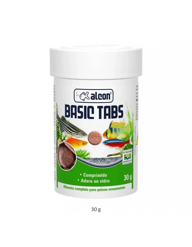 Alcon Basic Tabs é um alimento altamente nutritivo e atrativo, cujos comprimidos devem ser aderidos ao vidro do aquário. Muito apreciado por peixes ornamentais diversos, possui ingredientes especialmente selecionados e é enriquecido com vitaminas e minerais. Esta forma diferente e divertida de utilização permite apreciar os peixes enquanto se alimentam, e também controlar melhor a quantidade de alimento consumido. Para a manutenção adequada dos aquários utilize a linha de testes, condicionadores e corretivos Labcon.