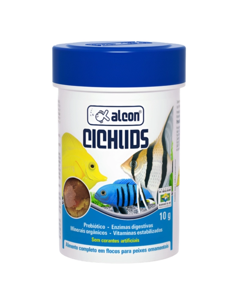 Alcon Cichlids garante nutrição perfeita para Ciclídeos amazônicos, como Acará Disco e Acará Bandeira, e também para a variedade de Ciclídeos africanos. É um alimento em flocos muito versátil, pois é também muito apreciado por peixes marinhos diversos. Sua formulação especial contém Enzimas Digestivas e Prebiótico, que favorecem o desenvolvimento da flora intestinal benéfica, melhorando o aproveitamento dos nutrientes. Não contém corantes artificiais. Conheça também a interessante opção Alcon Ciclídeos Grânulos. Para a manutenção adequada dos aquários utilize a linha de testes, condicionadores e corretivos Labcon.