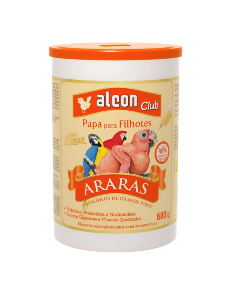 Alcon Club Papa para Filhotes Araras Super Premium foi especialmente desenvolvido para alimentar filhotes de Araras e outros Psitacídeos de grande porte. Indicado para a criação de filhotes “na mão”, sem a participação dos pais, bem como para a suplementação de pais e filhotes em sistemas onde os pais participam da criação. Altamente nutritivo e completo, contém enzimas digestivas, adequado balanceamento de nutrientes e uniformidade na textura, o que confere excelente digestibilidade. Além de vitaminas e minerais, o alimento é enriquecido com Prebiótico e Probióticos que favorecem a instalação da flora intestinal benéfica aos filhotes, responsável pela melhoria na absorção de nutrientes. Contém fonte de Nucleotídeos, que aceleram o desenvolvimento do trato gastrointestinal e glândulas anexas das aves, antecipando a capacidade ideal de aproveitamento dos alimentos.