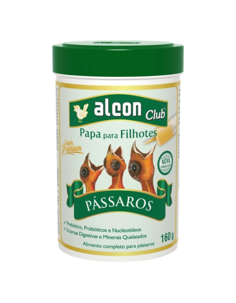 Alcon Club Papa para Filhotes Pássaros Super Premium foi especialmente desenvolvido para alimentar filhotes de diversas espécies de pássaros, como Curiós, Bicudos, Azulões, Canários, Exóticos, Coleiros, Sabiás e Trinca-Ferros. Pode ser usado para alimentação de filhotes “na mão”, sem a participação dos pais, como para a suplementação de pais e filhotes em sistemas em que os pais participam da criação. É um alimento altamente nutritivo e completo, sendo indicado também para a alimentação de aves doentes ou convalescentes. A presença de enzimas digestivas, o adequado balanceamento de nutrientes e a uniformidade na textura conferem excelente digestibilidade. Além de vitaminas e minerais, o alimento é enriquecido com Prebiótico e Probióticos que favorecem a instalação da flora intestinal benéfica aos filhotes, responsável pela melhor absorção de nutrientes. Contém fonte de Nucleotídeos, que aceleram o desenvolvimento do trato gastrointestinal e glândulas anexas das aves, antecipando a capacidade ideal de aproveitamento dos nutrientes.