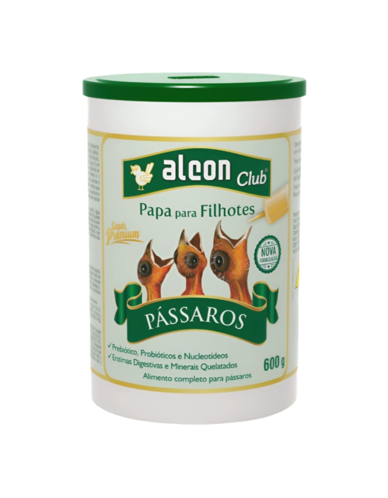 Alcon Club Papa para Filhotes Pássaros Super Premium foi especialmente desenvolvido para alimentar filhotes de diversas espécies de pássaros, como Curiós, Bicudos, Azulões, Canários, Exóticos, Coleiros, Sabiás e Trinca-Ferros. Pode ser usado para alimentação de filhotes “na mão”, sem a participação dos pais, como para a suplementação de pais e filhotes em sistemas em que os pais participam da criação. É um alimento altamente nutritivo e completo, sendo indicado também para a alimentação de aves doentes ou convalescentes. A presença de enzimas digestivas, o adequado balanceamento de nutrientes e a uniformidade na textura conferem excelente digestibilidade. Além de vitaminas e minerais, o alimento é enriquecido com Prebiótico e Probióticos que favorecem a instalação da flora intestinal benéfica aos filhotes, responsável pela melhor absorção de nutrientes. Contém fonte de Nucleotídeos, que aceleram o desenvolvimento do trato gastrointestinal e glândulas anexas das aves, antecipando a capacidade ideal de aproveitamento dos nutrientes.