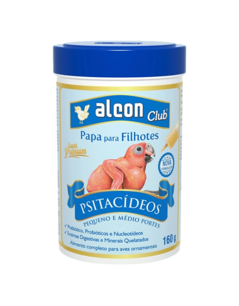 Alcon Club Papa para Filhotes Psitacídeos Super Premium foi especialmente desenvolvido para alimentar filhotes de Psitacídeos como Papagaios, Araras, Calopsitas, Agapornis e Periquitos. Pode ser usado para alimentação de filhotes “na mão”, sem a participação dos pais, como para a suplementação de pais e filhotes em sistemas em que os pais participam da criação. É um alimento altamente nutritivo e completo, sendo indicado também para a alimentação de aves doentes ou convalescentes. A presença de enzimas digestivas, o adequado balanceamento de nutrientes e a uniformidade na textura conferem excelente digestibilidade. Além de vitaminas e minerais, o alimento é enriquecido com Prebiótico e Probióticos que favorecem a instalação da flora intestinal benéfica aos filhotes, responsável pela melhor absorção de nutrientes. Contém fonte de Nucleotídeos, que aceleram o desenvolvimento do trato gastrointestinal e glândulas anexas das aves, antecipando a capacidade ideal de aproveitamento dos nutrientes.