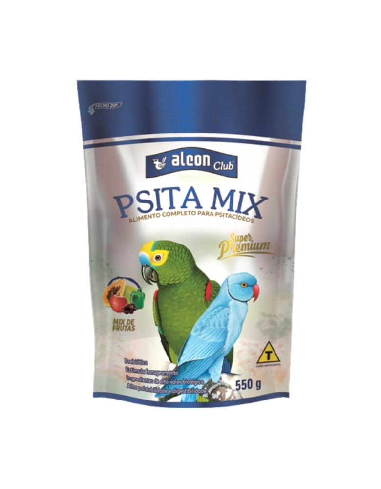 Alcon Club Psita Mix é um alimento completo Super Premium, cientificamente elaborado para suprir as necessidades nutricionais e energéticas de Psitacídeos adultos de grande e médio portes, como Araras, Papagaios, Jandaias, Maritacas, Ring Necks e Eclectus, durante a fase de manutenção. Sua composição balanceada, livre de corantes artificiais e palatabilizantes, combina perfeitamente o alimento extrusado com legumes e frutas desidratadas. Com ingredientes selecionados, vitaminas, minerais e Prebiótico, oferece excelente palatabilidade e digestibilidade. Além dos benefícios nutricionais, proporciona uma experiência alimentar que estimula o comportamento natural de forrageamento das aves. Alcon Club Psita Mix foi desenvolvido com granulometria e textura que promovem o consumo e reduzem significativamente o desperdício do alimento.