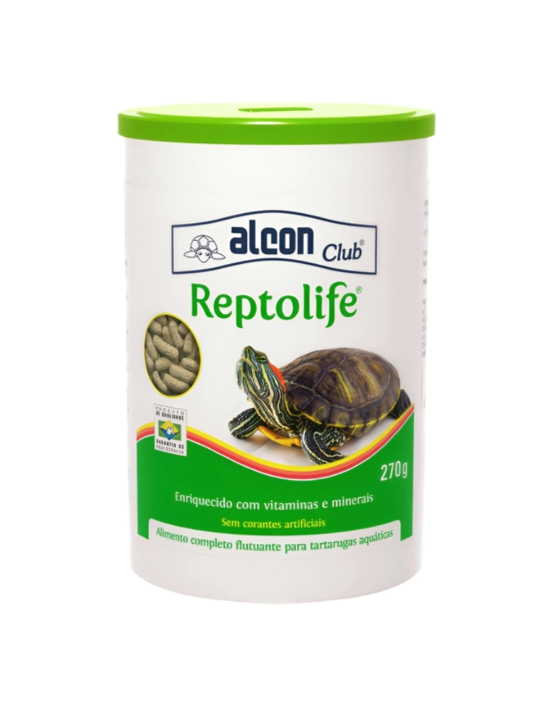 Alcon Club Reptolife foi desenvolvido especialmente para tartarugas aquáticas. Sua formulação balanceada e enriquecida com vitaminas e minerais proporciona adequado desenvolvimento e grande vitalidade a estes répteis. Com formato em bastões, este alimento extrusado é muito atrativo e altamente apreciado pelas tartarugas. Não contém corantes artificiais.