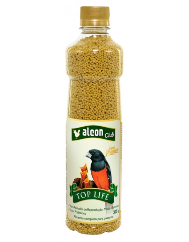 Alcon Club Top Life Super Premium é um alimento ideal para os períodos de maior exigência nutricional dos pássaros, como reprodução, muda de penas, convalescença ou estresse. Viagens, mudança de local, excesso de ruídos e doenças são algumas das causas de estresse em pássaros. É um alimento completo elaborado com ingredientes selecionados, ovos desidratados, vitaminas e minerais. Altamente atrativo, apresenta excelente palatabilidade e grande digestibilidade. Contém Prebiótico que favorece o desenvolvimento da flora intestinal benéfica, melhorando o aproveitamento dos nutrientes.