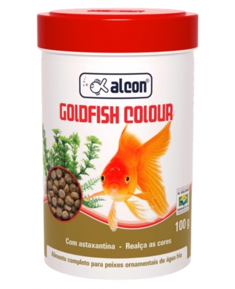 Alcon Goldfish Colour foi desenvolvido especialmente para nutrir e realçar as cores dos Goldfishes (Kinguios) e pequenos Kois (Carpas). Este alimento granulado, flutuante e completo, traz em sua composição spirulina e astaxantina, que realçam as cores e o brilho natural dos peixes. A qualidade e variedade dos ingredientes, aliados ao criterioso processo de extrusão, conferem excelente digestibilidade ao alimento, proporcionando beleza e desenvolvimento. Para a manutenção adequada dos aquários utilize a linha de testes, condicionadores e corretivos Labcon.