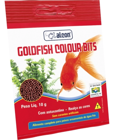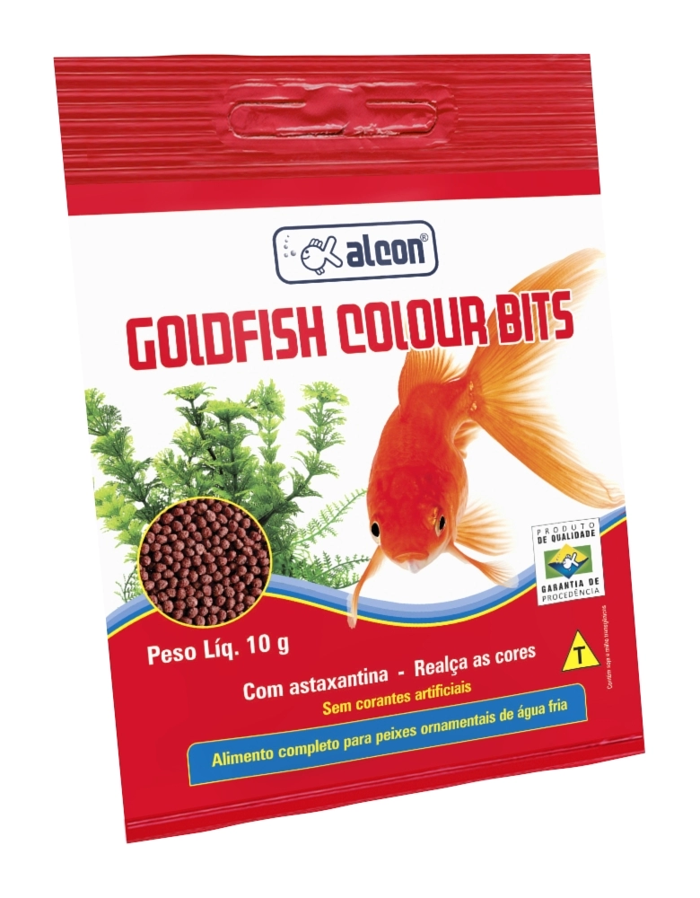 Alcon Goldfish Colour Bits é muito atrativo e foi desenvolvido para realçar as cores e o brilho de peixes de água fria, em especial Goldfishes (Kinguios) e Kois (Carpas). Este alimento granulado, flutuante e completo traz em sua composição spirulina e astaxantina, que realçam as cores e o brilho natural dos peixes. A qualidade e variedade dos ingredientes, aliados ao criterioso processo de extrusão, conferem excelente digestibilidade ao alimento, proporcionando beleza e desenvolvimento. Para a manutenção adequada dos aquários utilize a linha de testes, condicionadores e corretivos Labcon.
