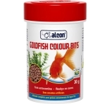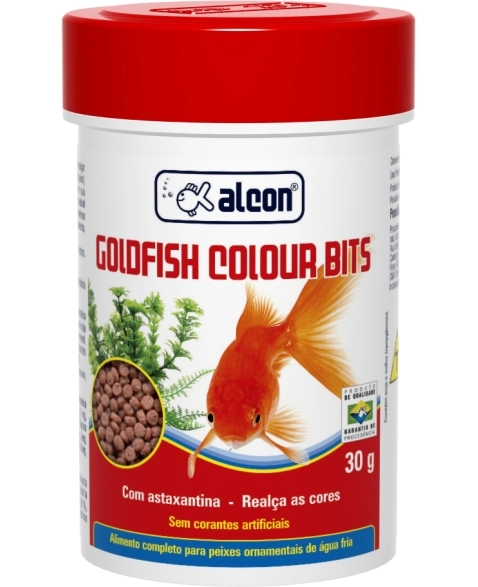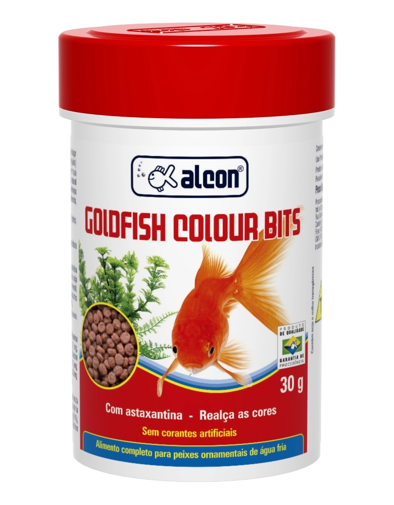 Alcon Goldfish Colour Bits é muito atrativo e foi desenvolvido para realçar as cores e o brilho de peixes de água fria, em especial Goldfishes (Kinguios) e Kois (Carpas). Este alimento granulado, flutuante e completo traz em sua composição spirulina e astaxantina, que realçam as cores e o brilho natural dos peixes. A qualidade e variedade dos ingredientes, aliados ao criterioso processo de extrusão, conferem excelente digestibilidade ao alimento, proporcionando beleza e desenvolvimento. Para a manutenção adequada dos aquários utilize a linha de testes, condicionadores e corretivos Labcon.