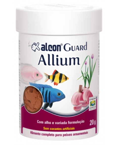 Alcon Guard Allium é um alimento especial, com uma formulação exclusiva elaborada para peixes ornamentais tropicais e de água fria. Conta com os benefícios do alho e uma formulação variada, sendo indicado para a manutenção rotineira do aquário em associação com outros alimentos completos. Contém Enzimas Digestivas e Prebiótico, que favorecem o desenvolvimento da flora intestinal benéfica, melhorando o aproveitamento dos nutrientes. Não contém corantes artificiais. Conheça também os benefícios de Alcon Guard Herbal e Alcon Guard Thymus.