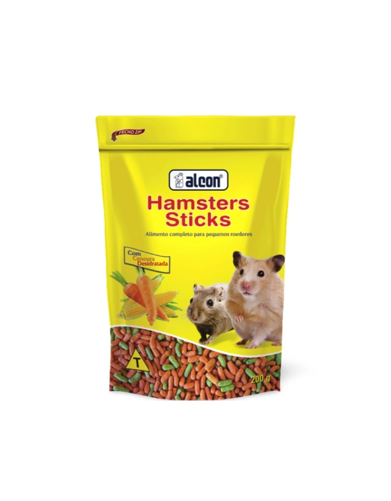 Alcon Hamsters Sticks é um alimento completo elaborado com ingredientes selecionados e enriquecido com vitaminas. Proporciona nutrição equilibrada aos pequenos roedores, como Hamster, Gerbil e Topolino. O formato e a textura crocante distraem os animais enquanto se alimentam.