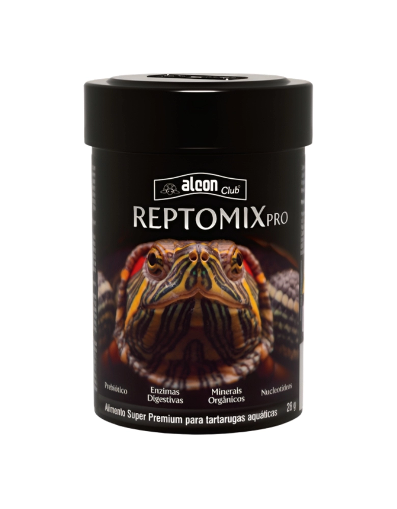 Alcon Club Reptomix Pro é um alimento completo Super Premium com alto teor de proteína, muito palatável e altamente atrativo, que promove nutrição de qualidade para tartarugas aquáticas. É composto pelo alimento extrusado em bastões Alcon Club Reptolife e pelo alimento extrusado em formato de camarão, que é muito nutritivo e apreciado pelas tartarugas aquáticas. Enriquecido com vitaminas e minerais, proporciona adequado desenvolvimento e grande vitalidade a estes répteis. Não contém corantes artificiais.