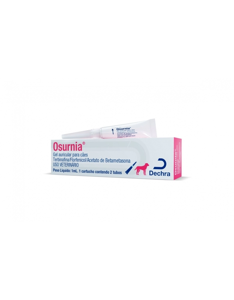 Cada tubo (1 mL) de Osurnia(tm) contém Florfenicol 10 mg, Terbinafina 10 mg, Acetato de Betametasona 1 mg e veículo q.S.P. 1 mL.