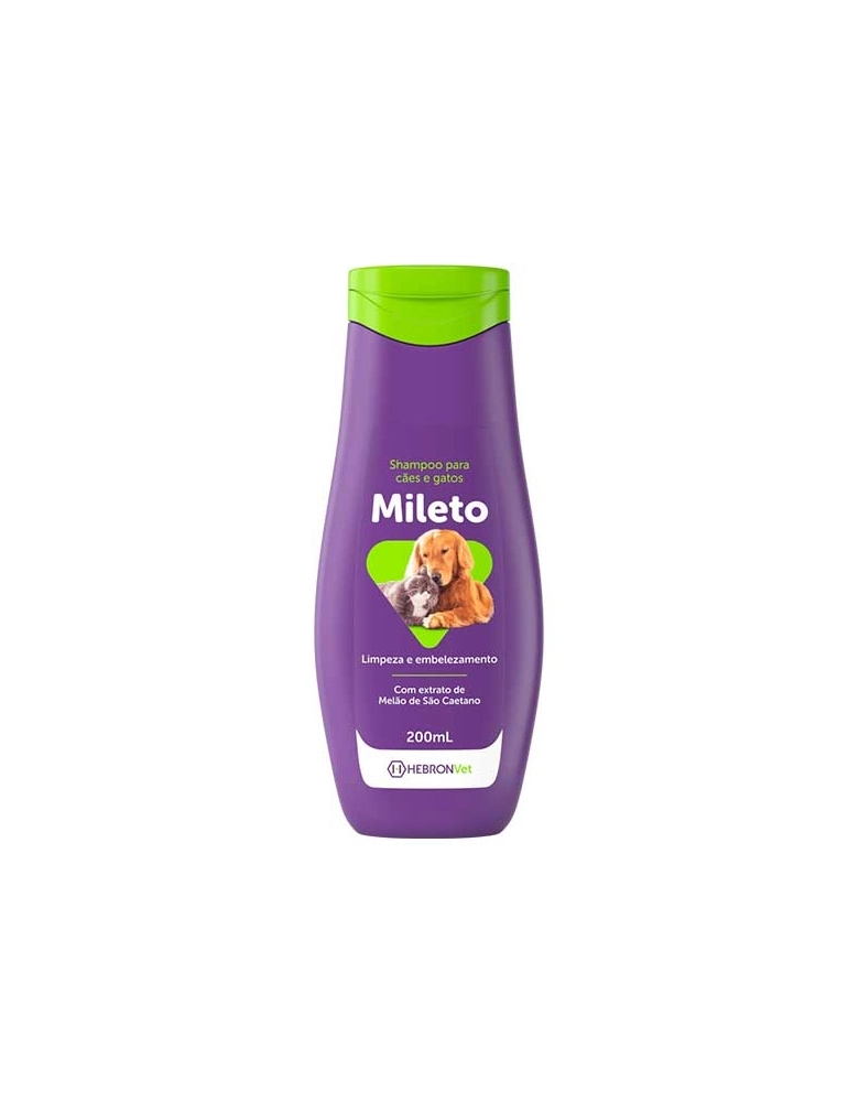 Mileto é um shampoo composto de extrato de melão-de-são-caetano. Com o Shampoo para Cães e Gatos Mileto, seu Pet vai sentir todo o seu cuidado na hora do banho. Mileto cuida com carinho do seu melhor amigo. Higieniza eprotege muito mais, graças ao extrato de Melão de São Caetano, que possui propriedades naturais. Para mais higiene e proteção, use Mileto na hora do banho no seu Pet.