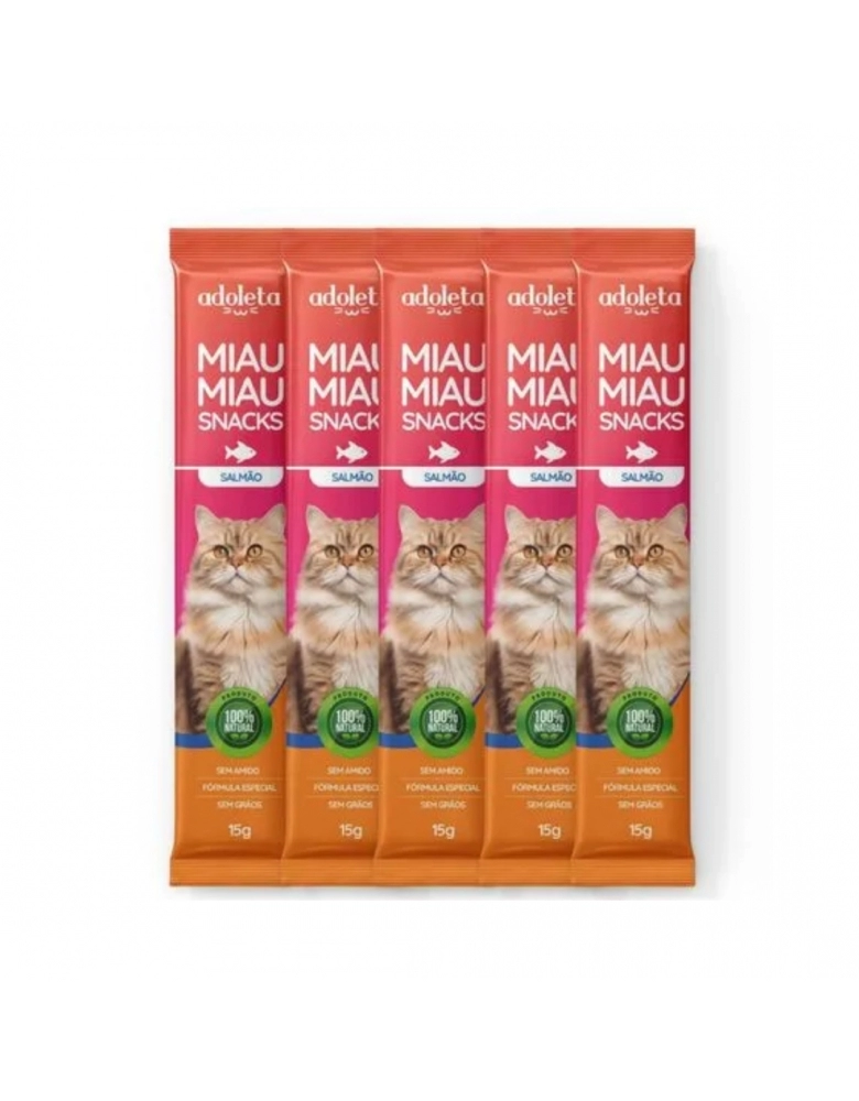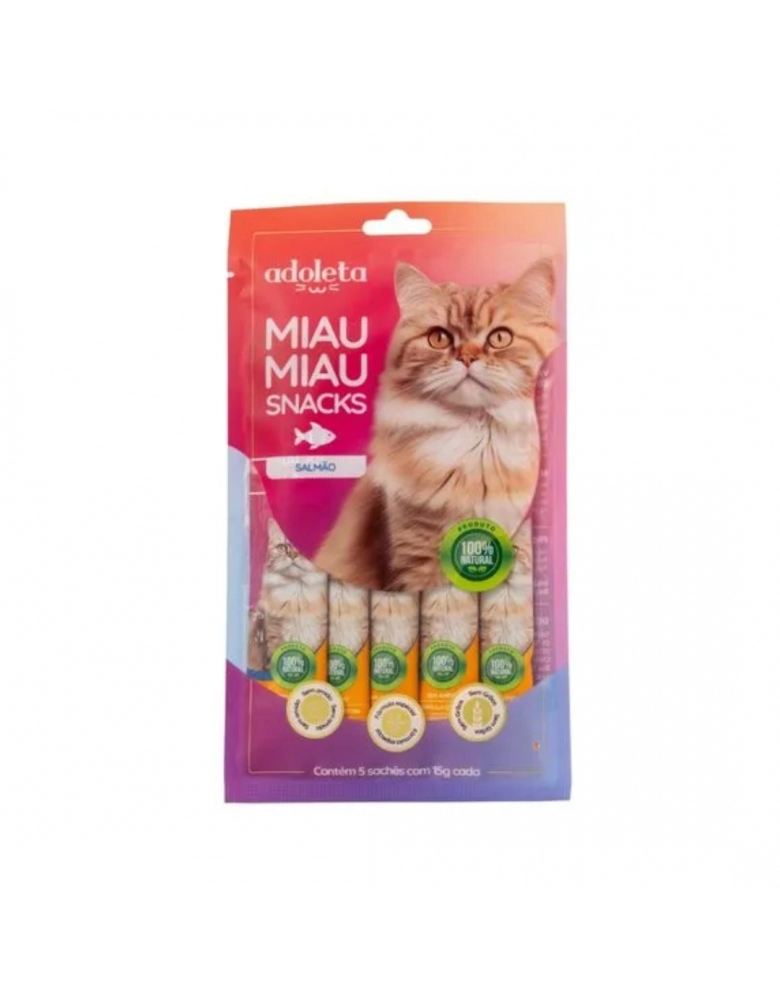 Miau Miau Adoleta é um snack para gatos, produzido com proteínas selecionadas e baixas calorias. É um lanche natural, sem amido e com fórmula especial sem grãos. Contribui para uma pelagem mais macia e brilhante. Ajuda a fortalecer o sistema imunológico.