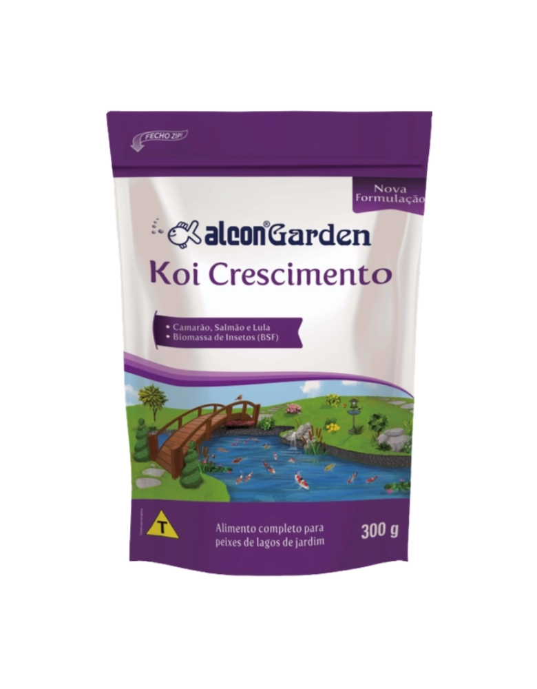 Alcon Garden Koi Crescimento foi especialmente desenvolvido para alimentar e promover rápido e saudável desenvolvimento dos peixes jovens de lagos de jardim. É altamente apreciado por Carpas ornamentais ou Nishikigoi em fase de crescimento. Contém ingredientes variados, como a biomassa de larvas de mosca soldado negra - BSF (Black Soldier Fly), que resulta em adequado balanceamento de nutrientes e elevado nível de proteína. A excelente flutuabilidade permite observar os peixes enquanto se alimentam na superfície, dosando as quantidades.