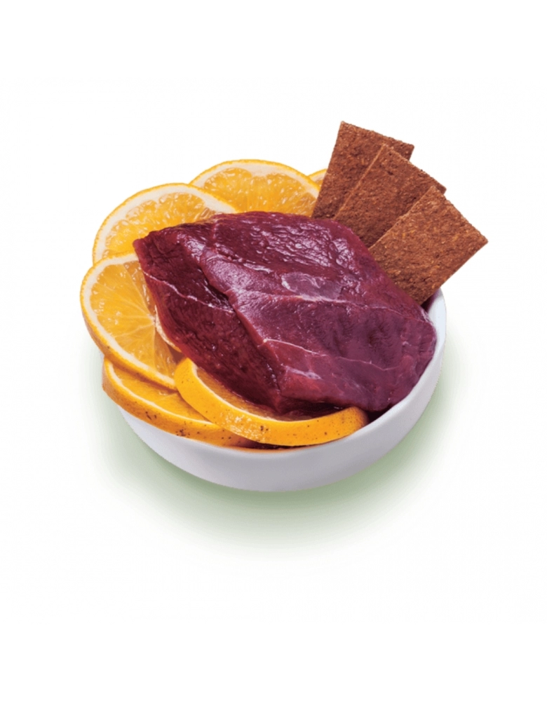 Carne mecanicamente separada de aves, pulmão de suíno, farinha de vísceras de aves, hemoglobina desidratada de bovino, farelo de arroz (10%), farinha de linhaça (0,2%), sacarose, morango (0,2%), mirtilo (0,2%), fibra de colágeno, farelo de aveia (1%), cloreto de sódio, glicerina derivada de biodiesel de óleo de soja, goma guar, sorbato de potássio, ácido cítrico, dióxido de silício, difosfato tetrassódico (pirofosfato de sódio), tocoferol (concentrado), extrato de alecrim, extrato de chá verde (Camelia sinenses), extrato de menta, hortelã (Mentha spp.), ácido propiônico, propionato de amônio, parede celular de levedura, Saccharomyces cerevisiae (CBS 493.94), Enterococcus faecium (IMI 507 120), Lactobacillus acidophillus (IMI 506857), levedura inativada desidratada e aroma de frutas vermelhas.