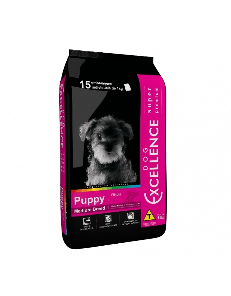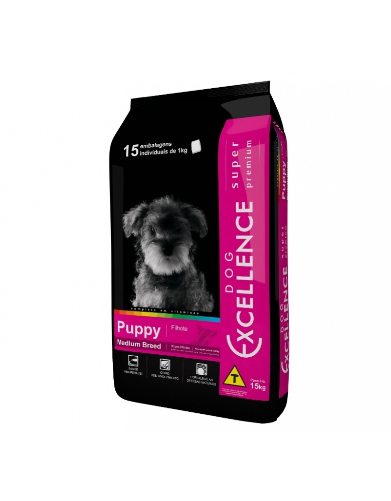 A Dog Excellence Super Premium Medium Breed Puppy é o alicerce nutricional para cães de raças médias (peso adulto entre 8kg e 25kg). Compreendendo o período crítico entre os 45 dias e 1 ano de vida, este alimento oferece uma densidade de nutrientes precisa para garantir que o filhote atinja seu potencial genético com saúde, força e vitalidade.