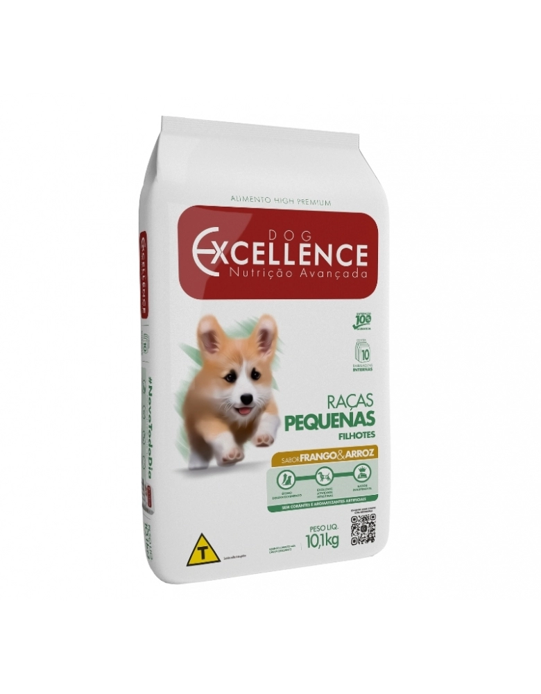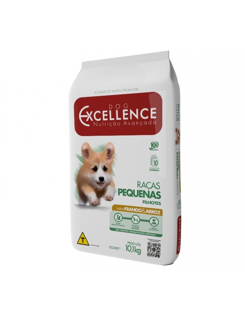 A Dog Excellence Hi-Premium Raças Pequenas Filhote (Sabor Frango e Arroz) é o resultado de uma missão clara: oferecer o que há de mais moderno em tecnologia nutricional para cães em crescimento. Desenvolvida para filhotes de 45 dias a 1 ano (com peso adulto até 10kg), esta linha entrega um equilíbrio impecável entre custo e alta performance, garantindo que seu filhote receba 100% das necessidades nutricionais para uma vida longa e saudável.