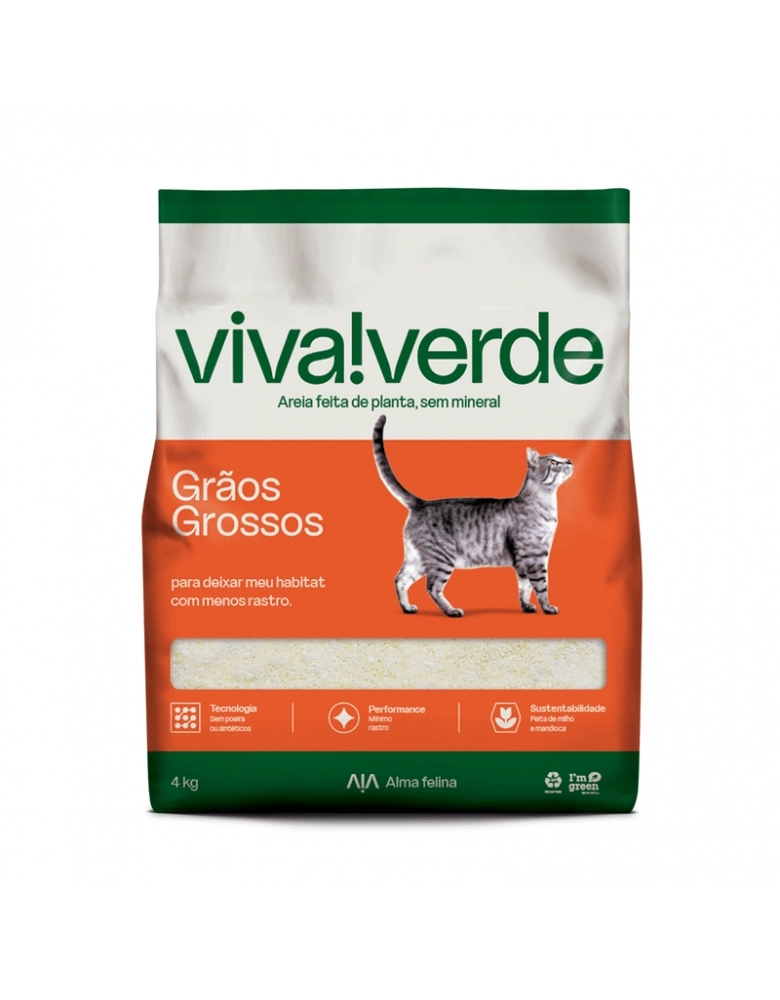 Com tecnologia inspirada na natureza, a Viva!Verde Grãos Grossos é a areia higiênica para quem quer mínimo rastro.