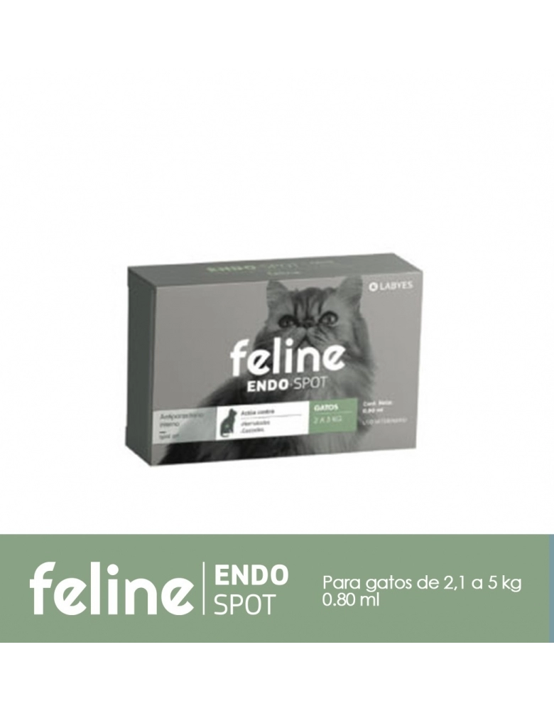 Feline Endospot, antiparasitário interno de aplicação spot-on. Sua fórmula, altamente eficaz, elimina os parasitas internos que frequentemente afetam os gatos. A Ivermectina, lactona macrocíclicas exerce potente efeito contra nematódeos e ácaros da sarna. O Praziquantel, derivado sintético da isoquinolina-pirazina apresenta efeito contra trematódeos e cestódeos.
