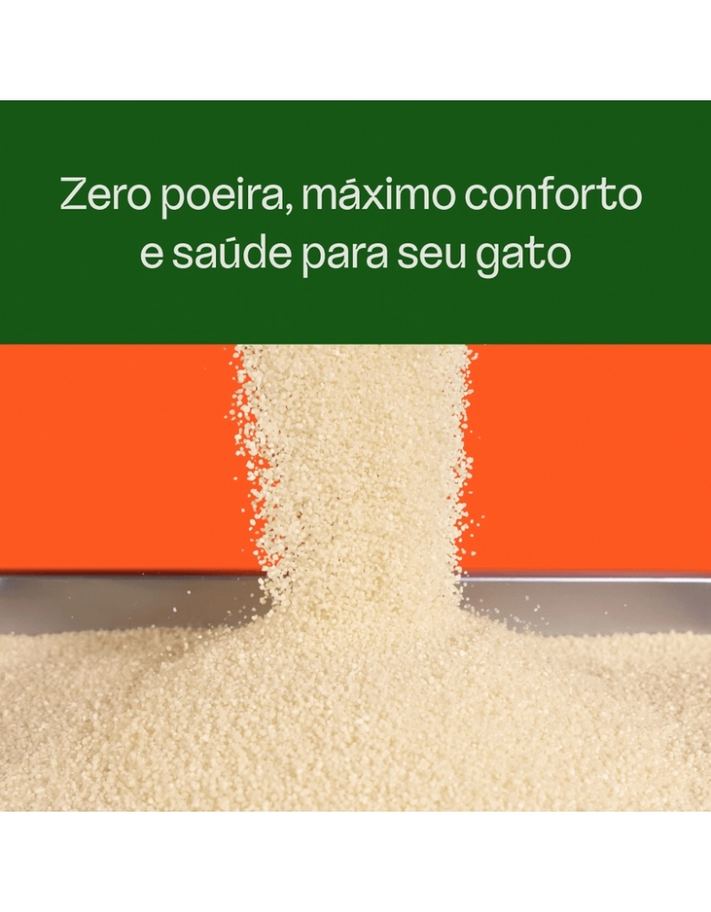 A Viva!Verde Grãos Grossos não faz sujeira e promove a eliminação do odor de urina com mínimo rastro. Feita apenas de milho e mandioca, é livre de poeira, indicada por médicos veterinários, além de ser a areia higiênica preferida do Encantador de Gatos, Jackson Galaxy.
